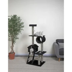 - It features two condos, a ramp, three perches, and a rope swing to keep cats busy for hours.