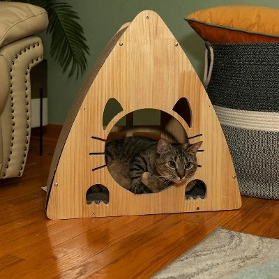 - The wood triangle cat cave house is strong, durable and more stable than soft ones.