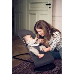 An ergonomic baby bouncer with natural rocking that makes life with young children easier and more enjoyable. Bouncer Balance Soft can be used by newborns and up to the age of 2. In the early months, until your baby starts trying to sit up, you can use it as a bouncer with the baby strapped into the harness. Once your baby is able to sit unaided, you can then use the bouncer as a comfortable child seat by simple reversing the fabric seat. You can use the product as a bouncer until your child weighs 20lbs/9kg or starts trying to sit up. Remember to keep your baby under constant supervision, use the safety harness and double-check that the snaps are locked (you can choose between two positions) when using the product as a baby bouncer.