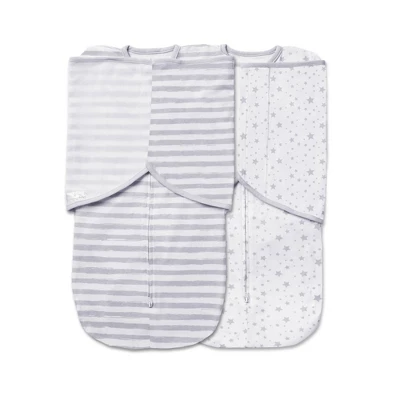 - 2 Swaddle Trios enable arms up, arms down, or arms out