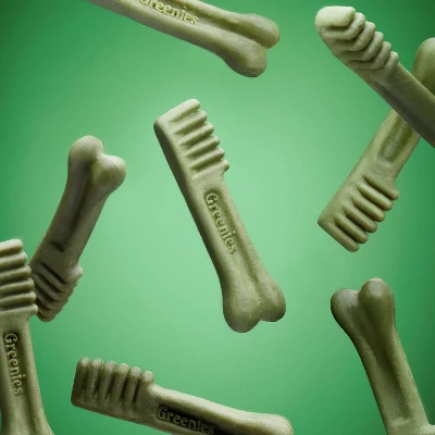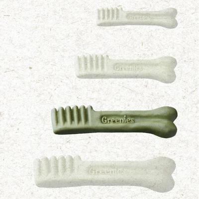 GREENIES Regular Natural Dog Dental Treats are irresistible daily dental chews your canine companion will love and are made for medium sized dogs between 25 and 50 pounds These scrumptious dog treats are made with real sweet potato and natural ingredients plus vitamins, minerals, and nutrients. Thanks to the unique, chewy texture, these canine treats clean down to the gumline to help fight plaque and tartar and freshen your dog’s breath. Plus, GREENIES dental treats are accepted by the Veterinary Oral Health Council for at-home dental care for dogs. Treat your pup to fresh breath, clean teeth, and healthy gums with a daily GREENIES dental chew. Trace amounts of preservatives may be present due to potential cross-contact during manufacturing.