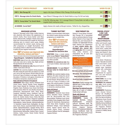 - Made with plant-based ingredients for beautiful skin, Palmer’s stretch mark products are free of parabens, phthalates, fragrance allergens, and artificial dyes