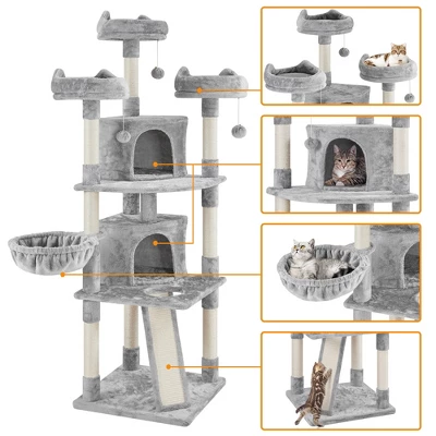 Yaheetech 76″H Large Plush Cat Tree With Platforms For Kittens Cats